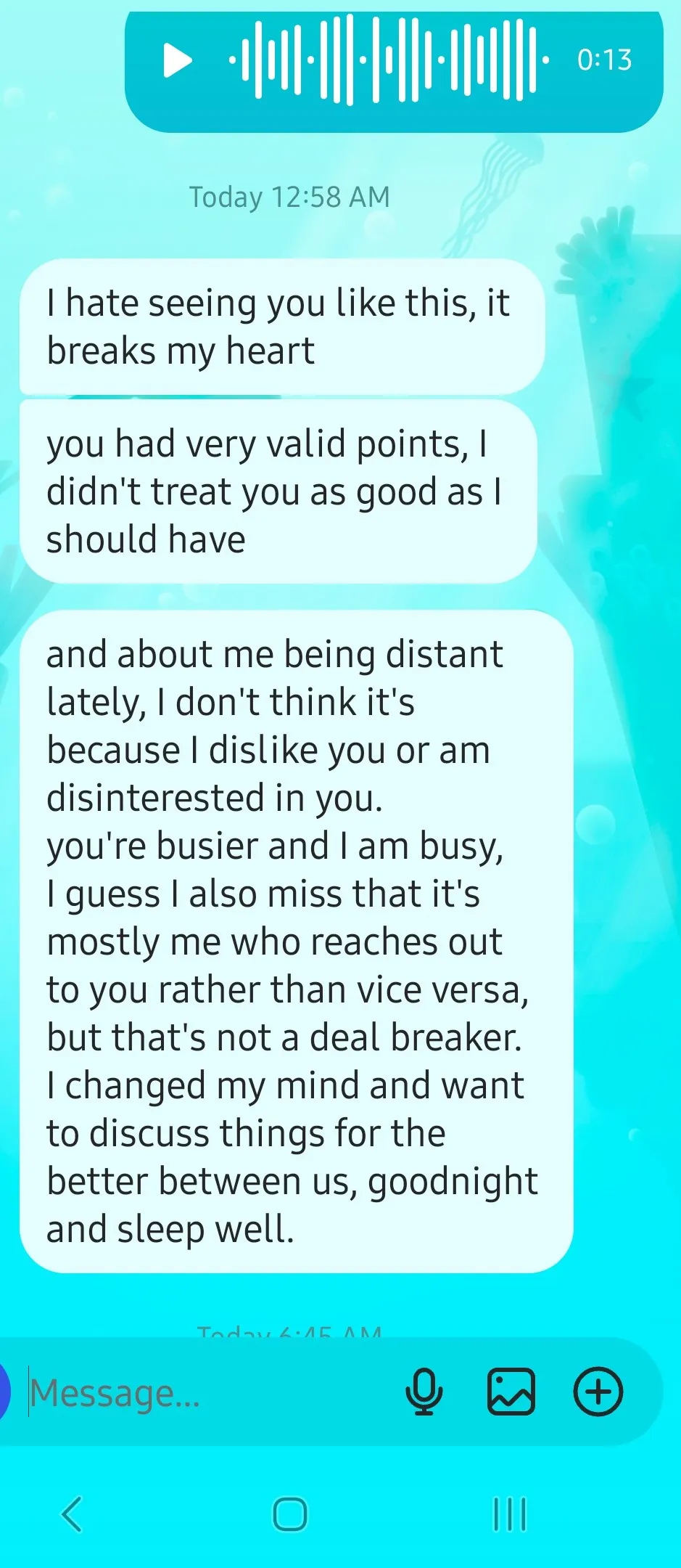 But when I cried to him about him not being the guy he was two screenshots before, his excuse was that he was "busy too" (he wasn't, nothing changed), as if that's a reason to break up?: